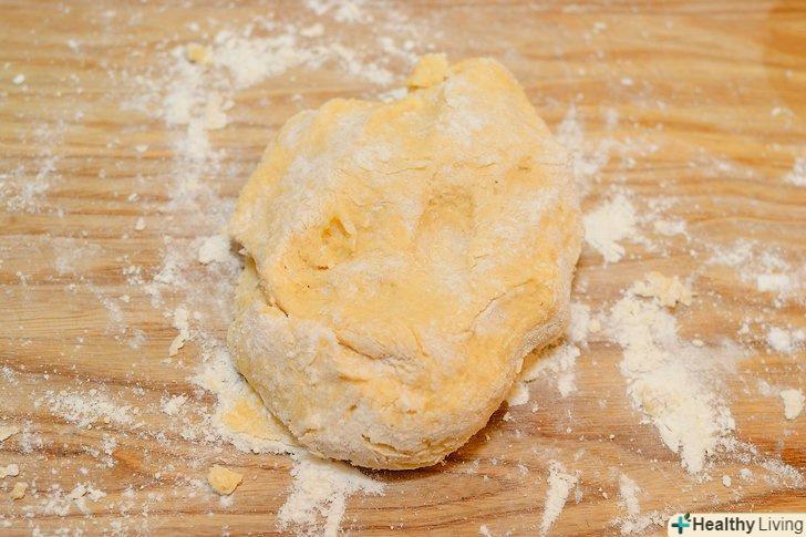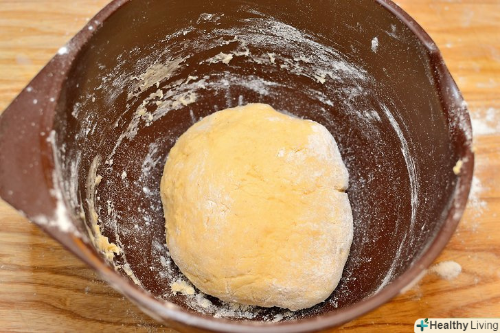 Замісіть тісто.переверніть тісто на чисту, злегка посипану борошном поверхню і руками замісіть тісто кілька разів, тільки досить довго для того, щоб воно стало гладким і досить еластичним.- Ви повинні також злегка посипати руки борошном, коли працюєте з тестом. В іншому випадку, борошно може липнути до рук, що створить більше безладу.