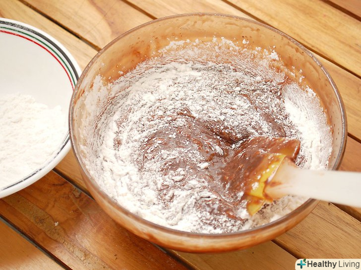 Поступово додайте в рідку суміш борошно і добре перемішайте.