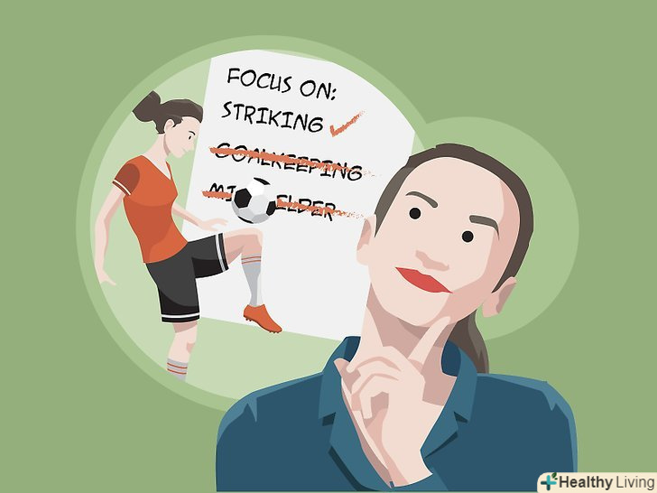- Ставте перед собою конкретні цілі під час кожного заняття. Повторюйте одне невелике завдання або процес багато-багато разів, поки повністю не освоїте його.[2] наприклад, якщо ви намагаєтеся поліпшити свої здібності в якомусь виді спорту, виберіть один з найважливіших його аспектів і присвятіть його відточування цілих 45 хвилин.
