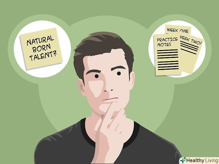 Зрозумійте, що вроджений дар менш важливий, ніж практика і завзятість.навіть ті здібності, які, здається, деяким людям дані від народження, розвиваються більше від навчання, ніж від вродженого таланту.[8] це стосується спортсменів, музикантів і математиків. Зрозумійте, що вроджений дар менш важливий, ніж практика і завзятість.навіть ті здібності, які, здається, деяким людям дані від народження, розвиваються більше від навчання, ніж від вродженого таланту.[8] це стосується спортсменів, музикантів і математиків.- Знайте, що вам знадобиться витримка. Психологи вдаються до використання цього терміна, коли мова йде про властивість, яким володіють успішні люди. Витримка вказує на завзятість і ентузіазм в досягненні довгострокових цілей.[9]