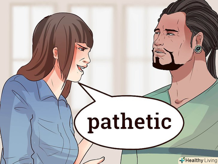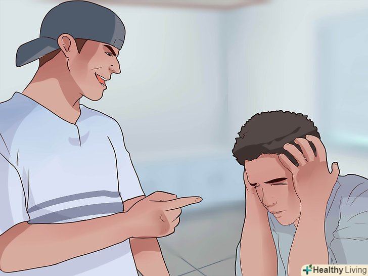 Демонструйте насолоду болем інших людей.Складова частина образу лиходія полягає в отриманні ним задоволення від приниження інших. Коли ви граєте лиходія, важливо демонструвати, яке величезне задоволення отримує ваш персонаж від страждань інших людей. Це повинно бути очевидним навіть тоді, коли у вас немає реплік. Наприклад, зобразіть на обличчі самовдоволену посмішку в той момент, коли інший персонаж плаче або переживає за кохану людину.[14]- Якщо в якійсь сцені ви звернені до глядачів спиною, сміх над невдачею іншого персонажа може стати непоганою альтернативою посмішці.