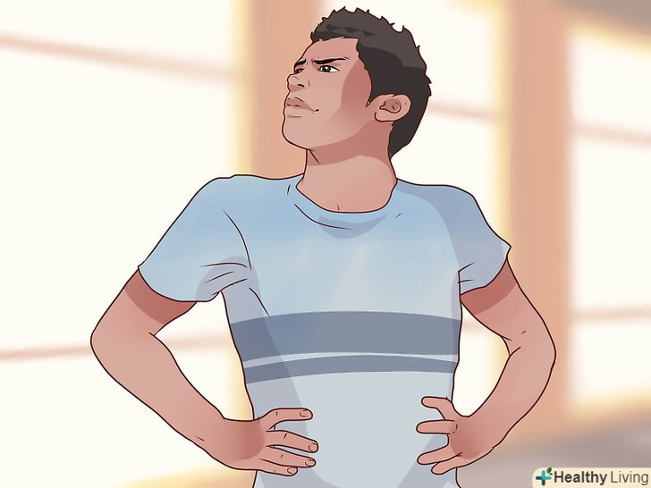 Випромінюйте впевненість.Одна з причин того, що лиходії часто лякають нас, полягає в їх повній впевненості в собі, у власних діях і ідеях. Насправді, зазвичай саме лиходії бувають самими впевненими персонажами з усіх дійових осіб п'єси.[16] щоб передати своєю грою цю впевненість, приділіть увагу поставі. Тримайтеся прямо, вип'ятіть вперед груди, як ніби хочете зайняти собою більше простору. Намагайтеся не метушитися.[17]- Якщо ви сидите, відкиньтеся на спинку стільця, щоб виглядати максимально можливо розслаблено.