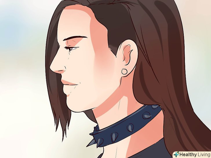 Доповніть вигляд зловісними аксесуарами.незважаючи на те, що ваш наряд, ймовірно, буде найбільше підкреслювати характер персонажа, деякі деталі можуть зробити особливий акцент на вашому зловісному образі. Ось чому не завадить підібрати деякі аксесуари, які пожвавлять образ вашого лиходія. Наприклад, це може бути незграбна біжутерія, така як нашийник або браслет з шипами, які посилять зловісний образ. Шкіряні рукавички також можуть стати тим самим аксесуаром, який зробить костюм персонажа більш зловісним.[3]- Персонажу за сценарієм можуть вимагатися особливі аксесуари, наприклад, пов'язка на око, яка зробить образ ще більш загрозливим.