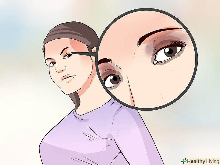 Нанесіть драматичний макіяж смокі-айс.створенню зловісного образу зазвичай сприяє використання темного помітного макіяжу. Нанесіть темними тінями для повік макіяж в стилі смокі-айс і жирно підведіть очі чорною підводкою. Навіть чоловічий персонаж, на який не нанесеш багато косметики, може виглядати більш зловісно, якщо йому трохи підвести очі підведенням.[6]- Щоб зробити простий макіяж смокі-айс, нанесіть тіні темного відтінку (чорні, темно-сині, сливові, коричневі або вугільно-сірі) на верхню повіку, розтушовуючи їх у напрямку вгору до шкірної складки. Потім нанесіть під бровою світлі тіні і розтушуйте їх у напрямку вниз, щоб змішати з темними тінями на столітті. Закінчите роботу нанесенням чорної підводки і туші.[7]