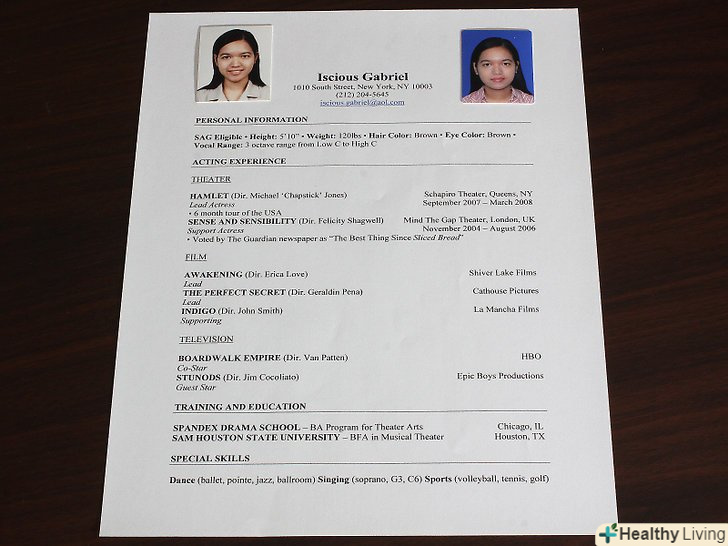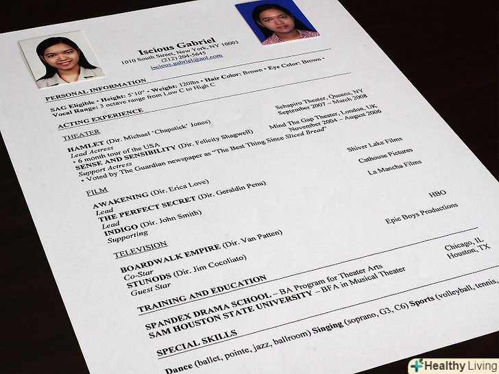 Переконайтеся, що в резюме вказана інформація, що стосується особливостей вашого досвіду роботи в театрі.