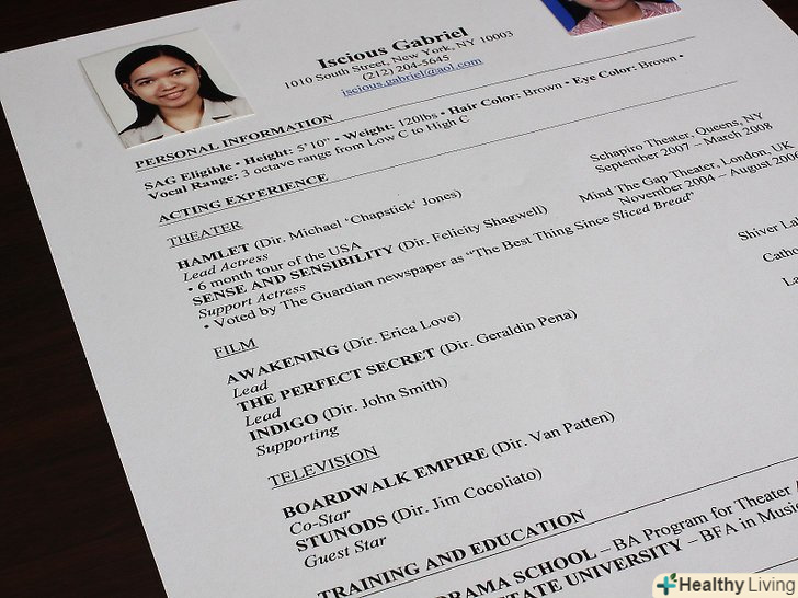 - Якщо ви не впевнені в тому, як правильно написати резюме для режисера кастингу або агента, попросіть досвідченого друга переглянути ваше резюме. Можна звернутися за консультацією до ділових агентств, які надають допомогу акторам в образотворчих мистецтвах або акторській майстерності. Багато агентств зберігають поточну версію резюме своїх клієнтів у форматі PDF. Слідкуйте за тим, що відбувається і наслідуйте своїм вчителям.