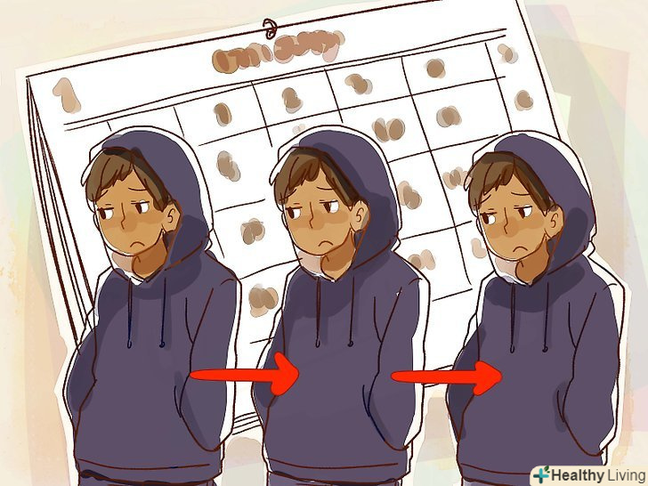 Відмовтеся від яскравого барвистого макіяжу.якщо ви зовсім не використовуєте косметику, просто пропустіть даний крок. Але якщо ви регулярно наносите макіяж, коли вбираєтеся, спробуйте відмовитися від нього. Людина в депресії часто відмовляється від звичайної рутини, і його менше турбують будь-які показні вчинки, тому відмова від макіяжу може явно натякати на те, що у вас депресія.[2]