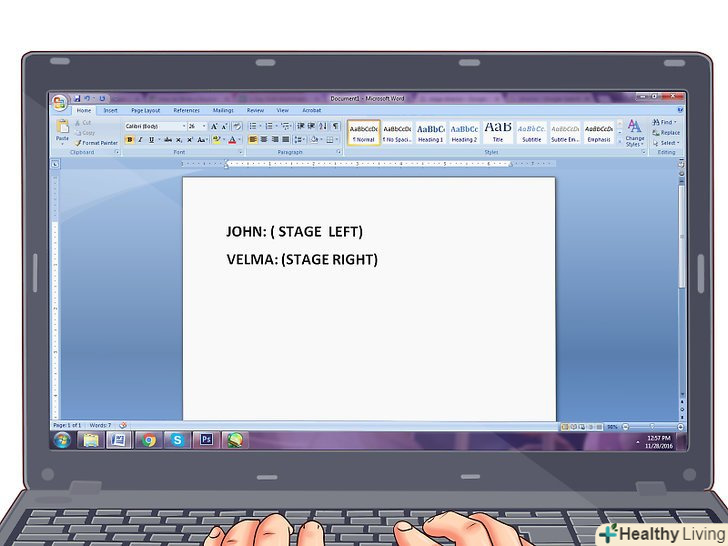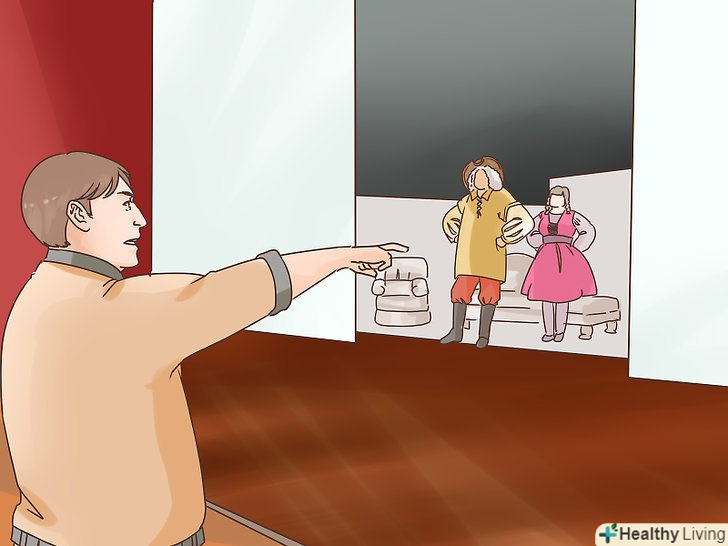 Додайте сценічні ремарки.вони вказують акторові на його положення на сцені, а також як йому підступити до дії або пісні. Сценічні ремарки повинні бути чіткими і по справі. Не робіть їх багатослівними і витонченими.[9] Додайте сценічні ремарки.вони вказують акторові на його положення на сцені, а також як йому підступити до дії або пісні. Сценічні ремарки повинні бути чіткими і по справі. Не робіть їх багатослівними і витонченими.[9]- Наприклад, якщо ви хочете вказати, що в сцені буде музичний номер, додайте в сценарій позначку: «починає грати музика (впишіть сюди музичний номер)». Це послужить акторові сигналом, що потрібно заспівати пісню.
