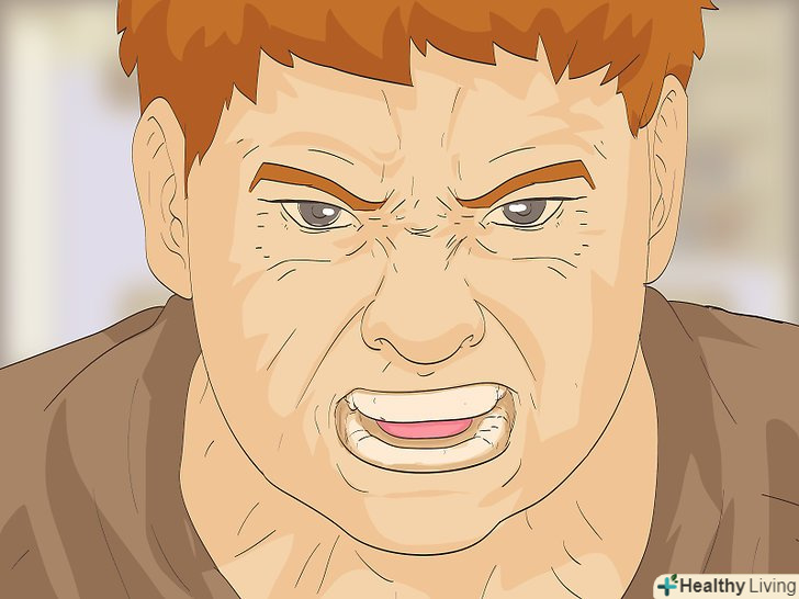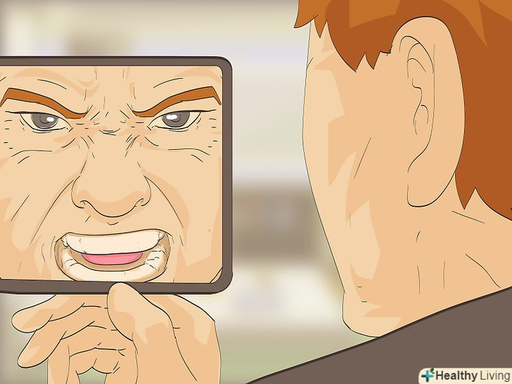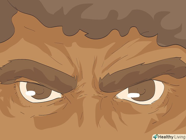 Для вираження крайнього гніву, розширте очі і роздуйте ніздрі.іноді, звичайного нахмуреного вигляду недостатньо для того, щоб передати сильний гнів, який ви відчуваєте всередині вас. Щоб надати своєму обличчю по-справжньому грізний вигляд, широко відкрийте очі, відкривши білки і роздуйте ніздрі, одночасно виконавши кроки, описані вище - нахмурьте лоб, куточки рота направте вниз і так далі.- Ви також можете напружити м'язи шиї і м'язи обличчя, щоб зробити вираз гніву більш яскравим. Напружте м'язи шиї, щоб на ній було видно сухожилля і одночасно зробіть складки на лобі і сильніше, ніж зазвичай направте куточки рота вниз. Це жорстке," напружене " вираз справляє враження тваринної, майже неконтрольованої люті.