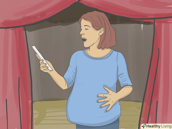 Надягайте накладний живіт на кожну репетицію. необхідно звикнути до своїх відчуттів. З кожною наступною репетицією роль вагітної буде даватися все легше. Іншим акторам також потрібно попрацювати над власною реакцією, і ваш накладний живіт цьому дуже допоможе. [5]