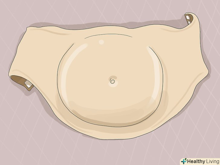 Підберіть матеріал, щоб зробити накладний живіт самостійно. Якщо Ви знайомі не з чуток з процесом шиття або моделювання одягу, то зможете самостійно зробити вельми переконливий животик. Спробуйте кілька варіантів, якщо зважилися на цей експеримент. Можна пошити чудовий накладний живіт, якщо ви дружите зі швейною машинкою. А якщо є досвід у створенні моделей з латексу, то створення реалістичної моделі з цього матеріалу не стане проблемою. [3]