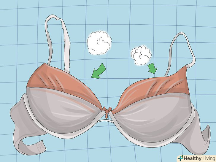 Зробіть груди (якщо ви чоловік). М'яч для регбі прекрасно підійде для імітації грудей вагітної жінки. Для цього перетягніть майку шнурком або еластичним бинтом по краях м'яча, щоб він не випадав.- Якщо не знайдете відповідного м'яча, візьміть бюстгальтер великого розміру і наповніть його клаптями тканини або поліестером. Такі груди буде виглядати цілком реалістично.