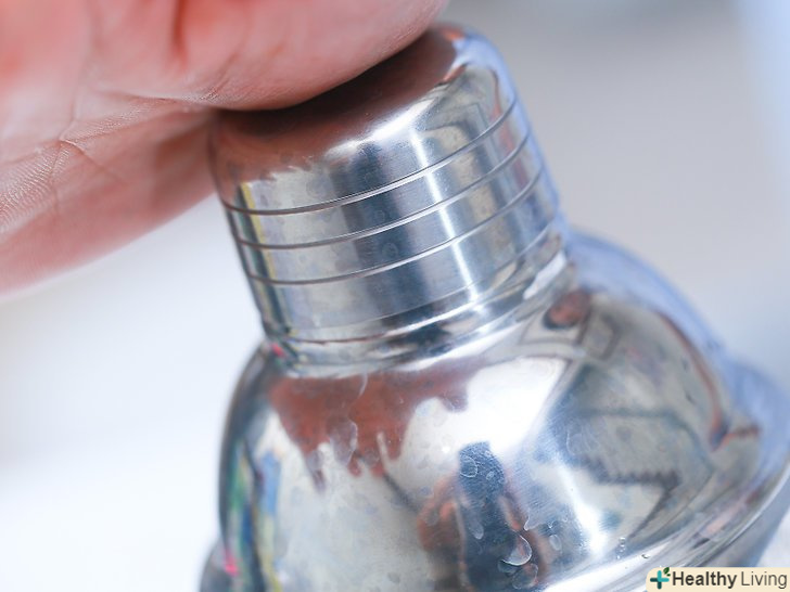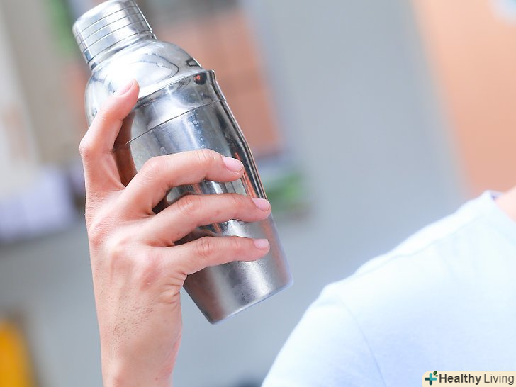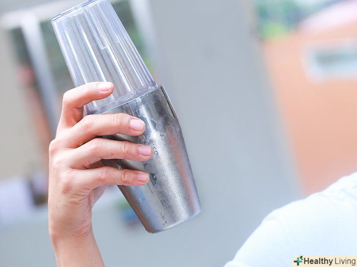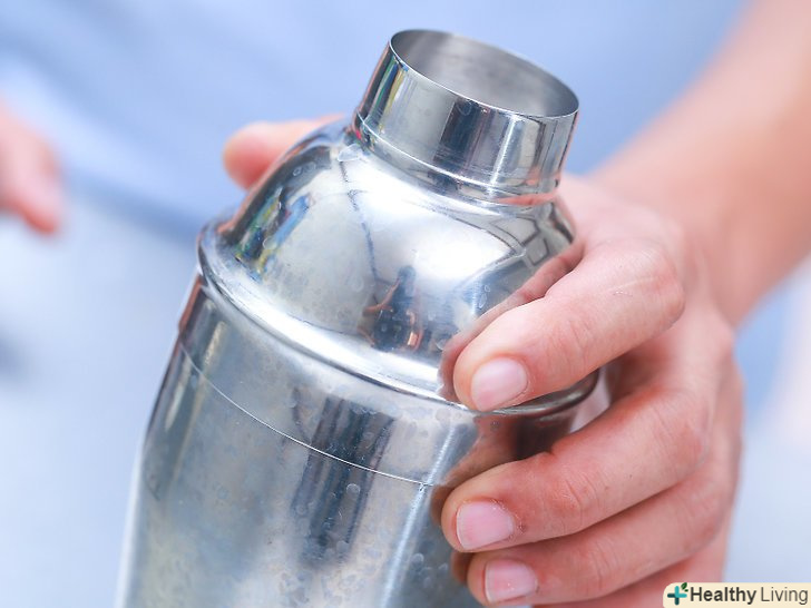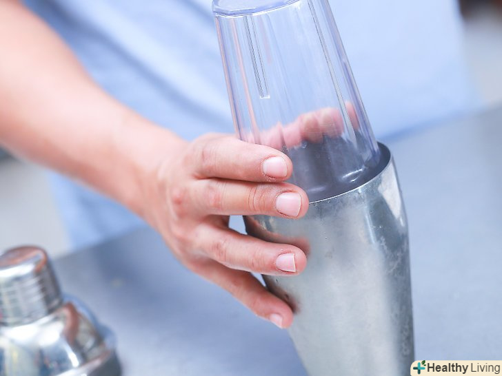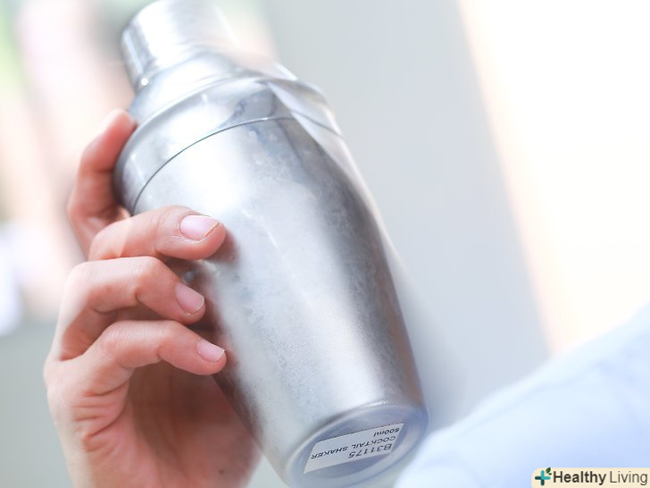 Струсіть коктейль, тримаючи шейкер трохи вище плеча і утримуючи обидві частини шейкера однією рукою.