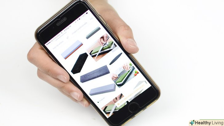 Виберіть відповідний тип точильного каменю. Вам доведеться зробити вибір між натуральним або синтетичним точильним каменем, який можна буде використовувати для мокрого заточування (із застосуванням води), заточування з маслом або сухого заточування. Також існують алмазні точильні камені, що представляють собою металеві бруски, покриті шаром дуже дрібних штучних алмазів. Точильні камені для мокрого заточування м'якше всіх, завдяки чому ними можна швидко підточити ножі. Але, на жаль, ці камені зношуються швидше за інших. Камені для заточування з маслом відносяться до найдешевших і їх виготовляють з більш твердих матеріалів. [2]- Робота з точильним каменем для заточування з маслом досить брудна і після неї доводиться прибирати за собою, проте сам точильний камінь такого типу служить довго.