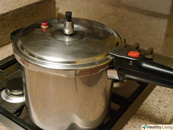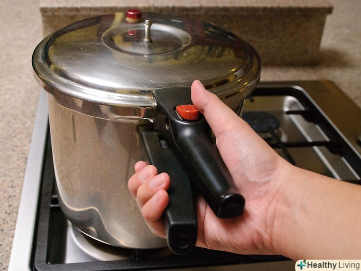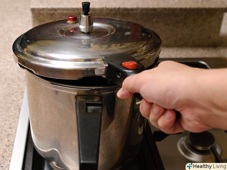 Зніміть запобіжний клапан або клапан тиску і закрийте кришку належним чином. переконайтеся в тому, що кришка закрита спеціальним механізмом. Поставте скороварку на велику пальник плити. Встановіть нагрів на максимум. Скороварка почне перетворювати воду в пару.