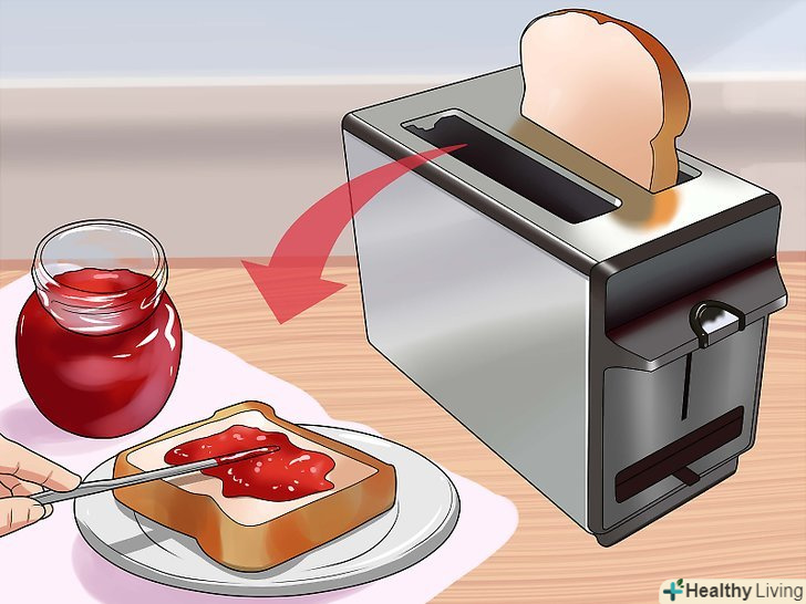 Вийміть тости.Ваші тости готові, коли важіль знову піднявся вгору. Тостер при цьому може видати сигнальний звук. Дістаньте тост руками або за допомогою дерев'яних щипців. Додайте до тосту улюблені ласощі перед вживанням!- Як би вам не хотілося, ні в якому разі не виймайте тост металевим предметом. Тостер працює від електрики, і металевий предмет може стати відмінним провідником. Будьте обережні!