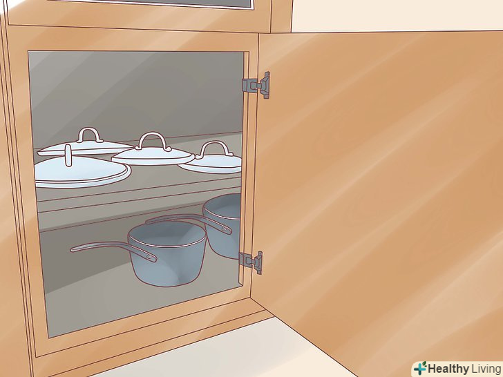 Каструлі і сковорідки складіть в нижні шафи, поруч з грубкою. у кожного своя кухня, але в більшості випадків Нижні шафки (ті, що під стільницею) є ідеальним місцем для зберігання каструль і сковорідок. Ці предмети часто важкі і незручні для зберігання, так що є сенс тримати їх трохи осторонь і в місці, де їх не треба буде піднімати занадто високо. Ті каструлі і сковороди, якими Ви користуєтеся найчастіше, прилаштуйте в найзручніший для вас шафка. Ті, що ви використовуєте не так часто, засуньте на самі нижні полиці і ближче до задньої стінки шафи.- Щоб зберігати каструлі було ще легше, ви можете навісити спеціальну стійку для каструль поруч з шафою, тоді вам їх не треба буде складати їх одна в одну.