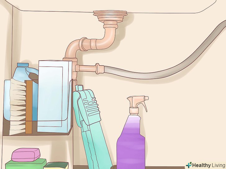 Чистячі засоби поставте під мийку. місце під мийкою дуже зручне для того, щоб тримати кухню в чистоті. Пакети для сміття, чистячі засоби, гумові рукавички, запаси мила і миючого засобу для посуду, губок і т.д. у багатьох будинках знаходяться саме там. Не треба ставити туди ніяких кухонних предметів або харчових запасів, якщо Ви там зберігаєте чистячі засоби.