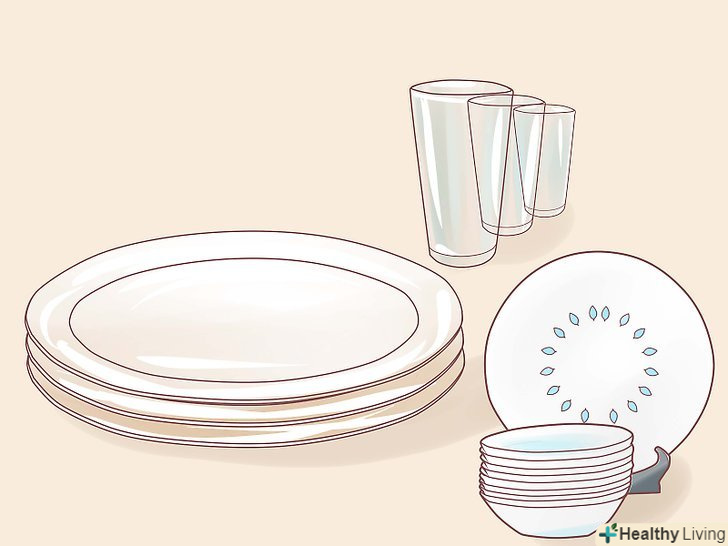 Розкладіть предмети, які ви плануєте залишити. розподіліть їх групами, відповідно до типу. Коли ви облаштовуєте кухню, найкраще групувати схожі предмети разом. Так вам буде простіше знайти необхідне, і ви будете знати, скільки чистих предметів у вас залишилося або які саме запаси вам належить поповнювати.- Згрупуйте всі скляні вироби, включаючи склянки для води, соку та інші, якими Ви користуєтеся щодня.