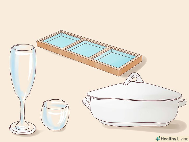 - Окремо зберіть столове скло на ніжці, як винні келихи і фужери для шампанського. Сюди ж можна додати і келихи без ніжок.