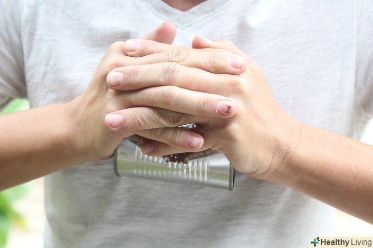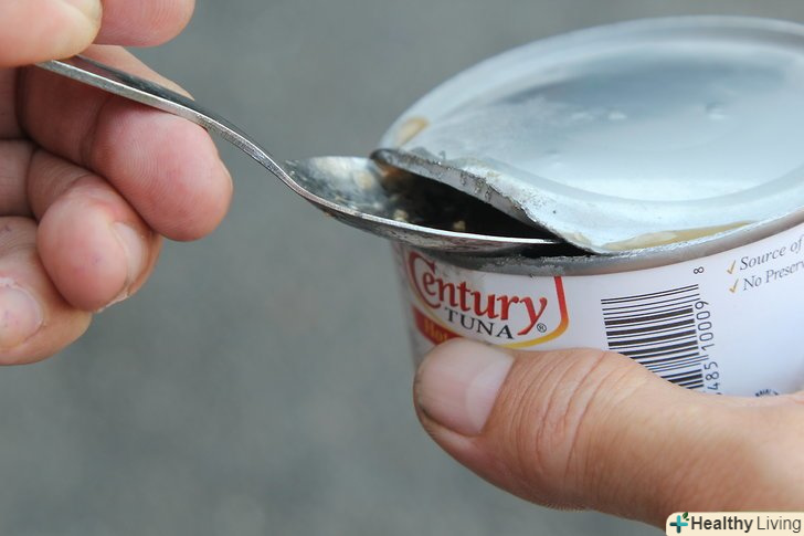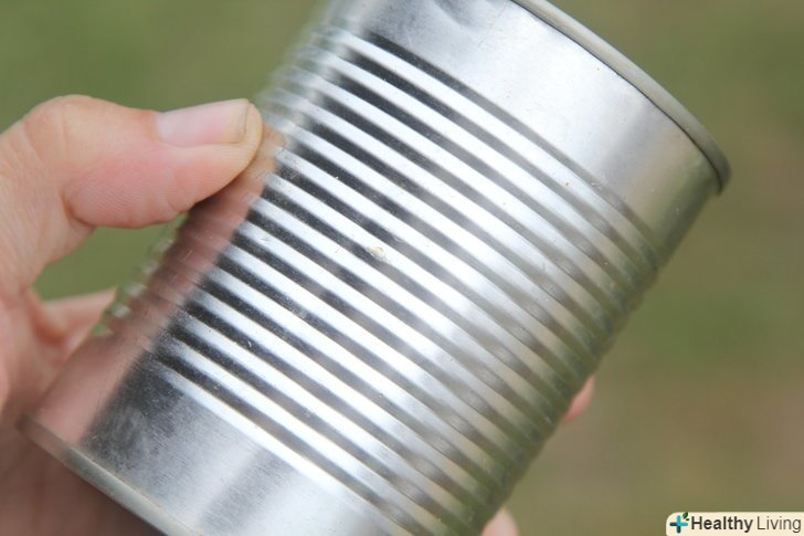 Тріть консервну банку каменем або шматком бетону. знайдіть плоский, грубий камінь або шматок бетону. Переверніть банку догори дном і тріть Виступаючий ободок каменем з грубою, шорсткою поверхнею, злегка натискаючи. [1]- Якщо в баночці тільки рідина, ви можете притримати її у вертикальному положенні і кінчиком ложки потерти невелику ділянку облямівки, торкаючись виступає на банку обідка. [2]
