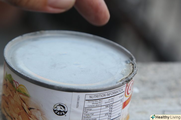 Притисніть краї банки. поставте банку на рівну поверхню і Стисніть обома руками. [3] спочатку дійте плавно, поступово стискаючи все сильніше, адже якщо кришка відкриється занадто різко, ви ризикуєте порізати пальці.- В якості альтернативи, можете вдарити банку цією стороною об щось тверде. Цей спосіб не такий акуратний, але ви навряд чи поріжетеся.