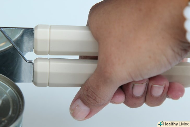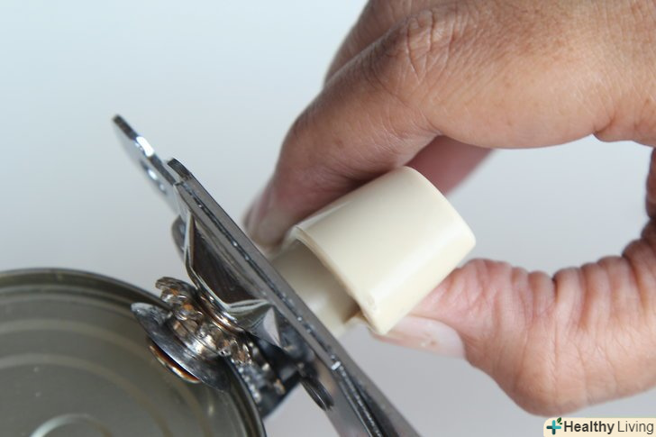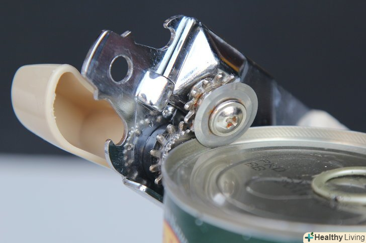 - Якщо у Вашого консервного ножа є коліщатко або обертається ручка, можливо це просто застаріла модель. У таких відкривачок гострі леза для різання кришки уздовж зовнішнього паза. Нахиляйте консервний ніж вгору і вниз, щоб розрізати кришку уздовж паза, повертаючи банку. У процесі різання використовуйте зазубрений шматок металу над лезом для вирівнювання відкривачки на тлі піднятою облямівки банки.