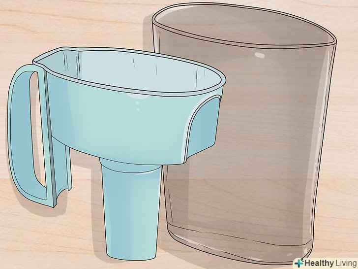 Дістаньте і помийте воронку. дістаньте з глечика воронку і поставте її в раковину. Протріть воронку м'якою тканиною, використовуючи м'який засіб для миття посуду і теплу воду. Не забудьте протерти її як з зовнішньої, так і з внутрішньої сторони, а також місце, куди вставляється фільтр. [2]
