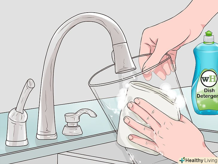 Використовуйте неабразивний засіб для миття посуду і м'яку ганчірку. підійде будь-яка рідина для миття посуду з м'якими чистячими компонентами. Замість сталевої мочалки та інших жорстких щіток протріть глечик м'якою ганчіркою або губкою. [4]- Глечик можна помити такими засобами для миття посуду, як Dawn, Palmolive і Fairy.