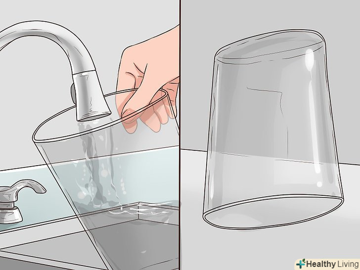Сполосніть глечик, після чого залиште його висихати перевернутим. гарненько сполосніть глечик. Щоб глечик висохнув, переверніть його і залиште на сушарці або на чистому рушнику на столі. Не витирайте глечик рушником, адже тоді на ньому залишаться крихітні волокна, які потім потраплять вам у воду. [5]- Якщо ви поспішаєте, витріть глечик паперовим рушником, щоб на його стінках не залишилося тканинних волокон.