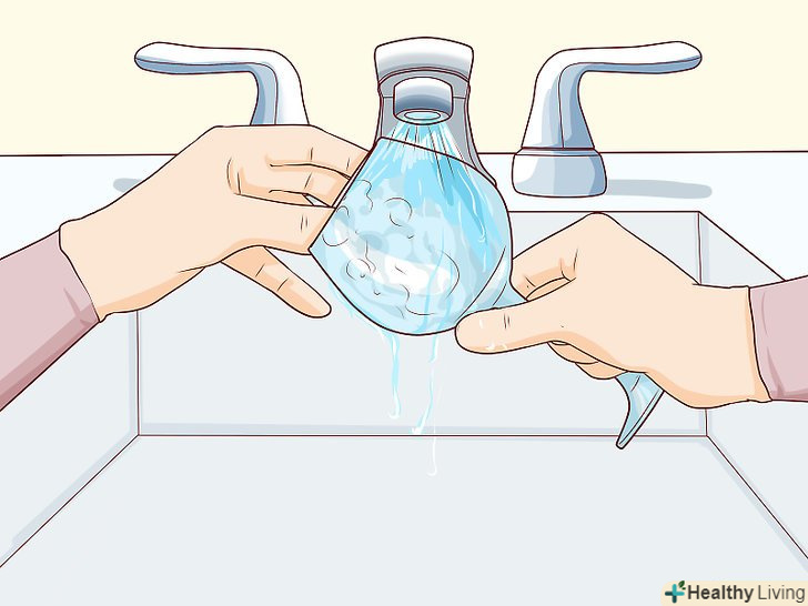 Мийте вироби зі скла вручну. час від часу скляний посуд Le Creuset можна залишити на верхній полиці посудомийної машини, але, як правило, її краще мити вручну. Використовуйте теплу мильну воду і засіб для миття посуду, щоб помити скляний посуд зсередини і зовні, а потім сполосніть її і ретельно витріть сухою бавовняною тканиною. [8]