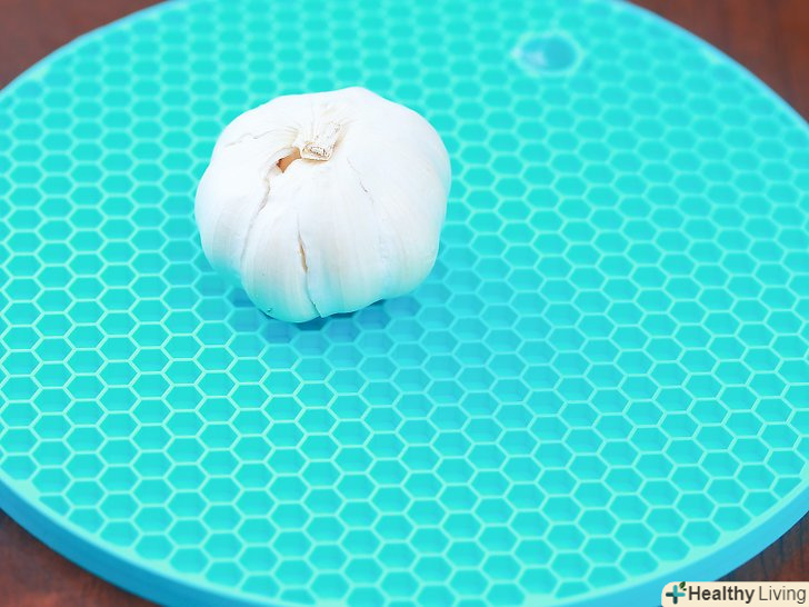 Відокремте зубчики часнику один від одного. помістіть головку часнику на стільницю. З силою натисніть зверху долонею. Так ви зможете розділити головку на окремі зубчики.- Після цього зубчики розлетяться в сторони. Так буде, якщо у головки часнику немає оболонки, в іншому випадку зріжте верхівку і розділіть зубчики вручну.