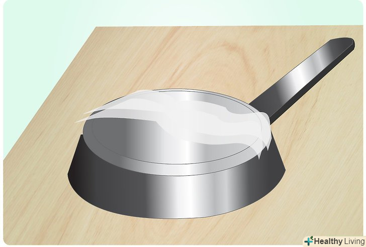 Помістіть сковороду на плоску поверхню, дном до верху.найкраще це робити на кухонній стільниці. Яка б не була поверхня, вона повинна витримати величезний натиск сили.