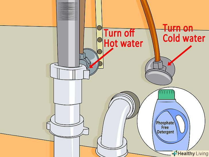 Відкрийте кран з гарячою водою і почекайте, поки не піде гаряча.посудомийні машини хоч і можуть самі нагріти воду, але з уже гарячою водою мийка стане більш ефективною. Якщо ви не хочете зливати воду в раковину, наберіть її в якусь ємність, щоб потім використовувати для поливу квітів або для інших потреб.