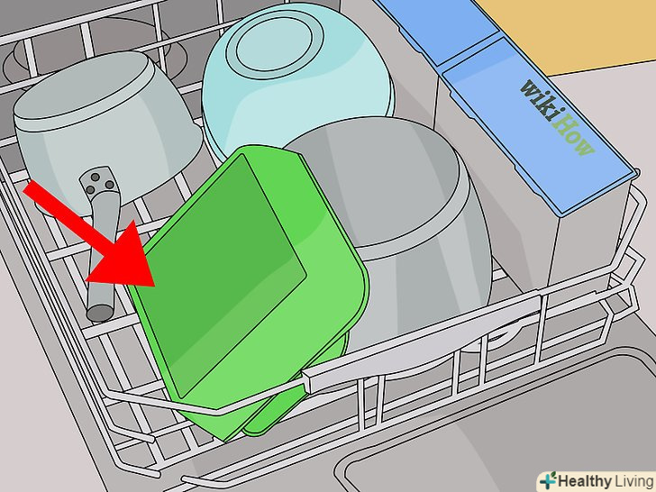 Розкладіть пластикові контейнери на верхньому лотку.оскільки нагрівальний елемент у більшості посудомийних машин знаходиться на дні, не варто розміщувати там пластикові предмети, інакше вони можуть розплавитися або деформуватися.