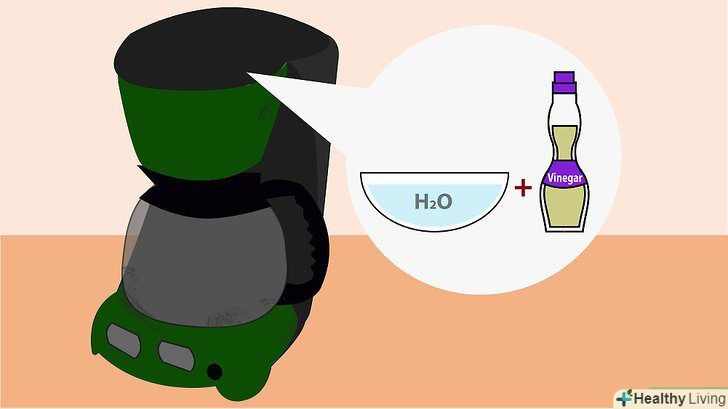 - Сполосніть кавоварку. дістаньте фільтр з контейнера для фільтра. Вилийте оцет з глечика. Залийте в бак чисту воду і натисніть на кнопку, що відповідає за заварювання кави. Вилийте воду з глечика після одного циклу заварювання і сполосніть глечик. [13]
