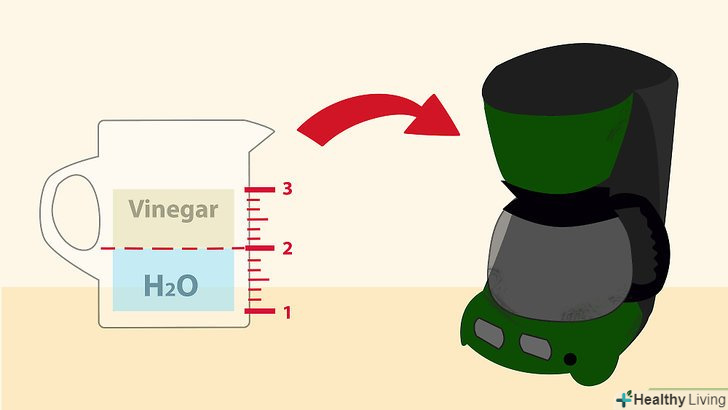 Приготуйте розчин з рівних частин оцту і води. щоб прибрати відкладення жорсткої води, змішайте оцет і воду в співвідношенні 1:1. Якщо на глечику є вимірювальна шкала, використовуйте її для приготування розчину. Налийте розчин у резервуар для води. [11]- Оцет з водою також можна змішати в мірному склянці.
