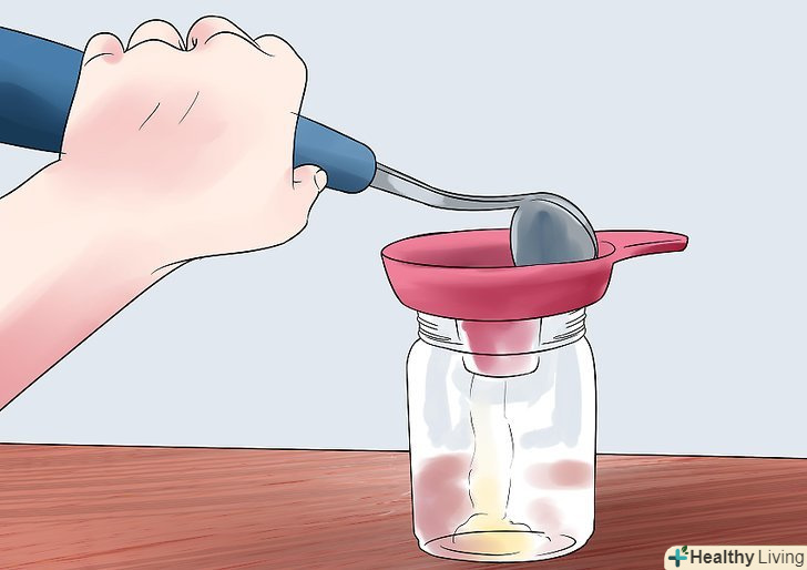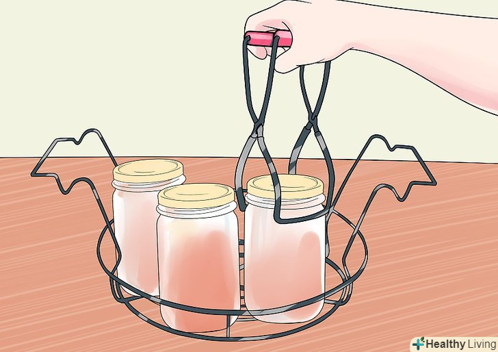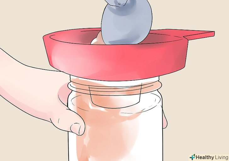 Дістаньте теплі банки. помістіть широку воронку біля горлечка. Налийте ваші консерви в банку.- Повторіть з іншими банками.