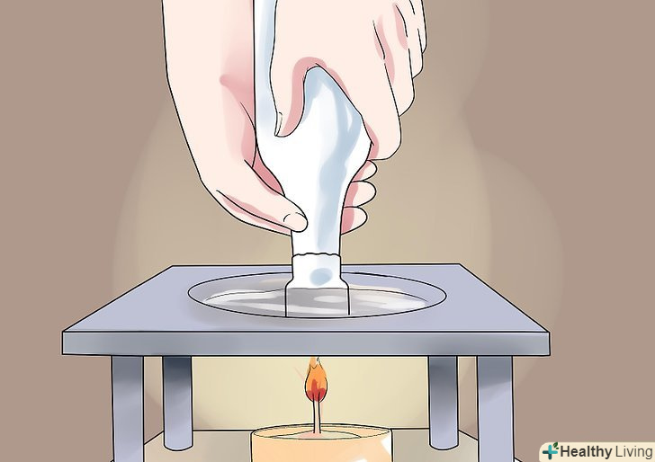 Запаліть свічку і помістіть під ємність, щоб розплавити там віск.