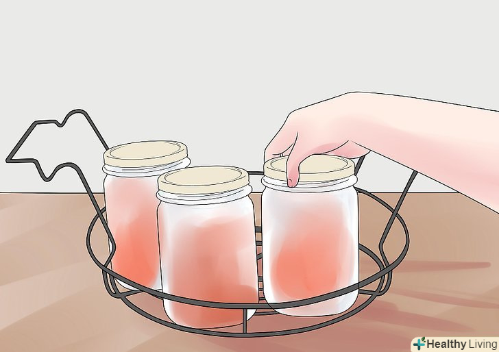 Поставте банки на стійку. стійка встановлена на дні водяної бані, щоб банки не розбилися об дно. Не ставте банки один на одного.- Можливо, вам доведеться закручувати їх кількома партіями.