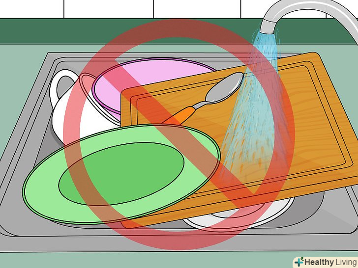 Не залишайте дерев'яну обробну дошку в раковині.ніколи не кладіть дерев'яну обробну дошку в раковину разом з рештою посудом. Запам'ятайте, що дошку слід мити відразу ж після використання. Замочування дошки в раковині зашкодить її: від води Деревина може почати псуватися або жолобитися. [12]