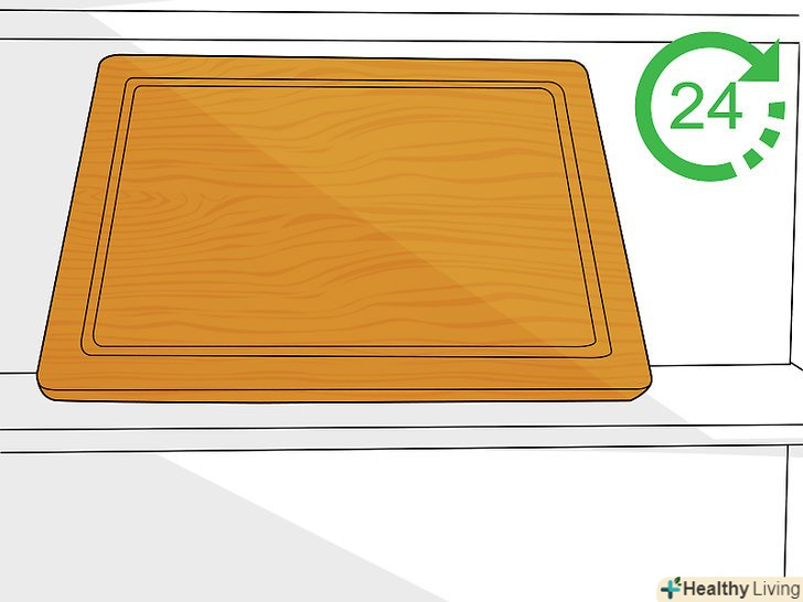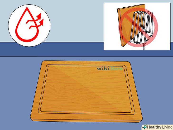 Правильно сушіть обробну дошку.не ставте обробну дошку сушитися на боці в сушарці для посуду. Замість цього просто укладайте її на плоску поверхню. Якщо ставити обробну дошку для просушування набік, то з часом вона почне згинатися в одному напрямку.[8]