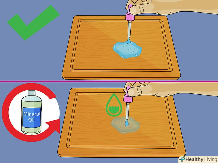 Регулярно проводите повторні обробки маслом.кожні кілька тижнів проводите перевірку дошки краплями води. Якщо вода залишається на поверхні, то дошка не потребує обробки маслом. Якщо ж вода вбирається, необхідно обробити дошку ще одним шаром вазелінового масла, після чого залишити її постояти на ніч, щоб масло вбралося.[9]