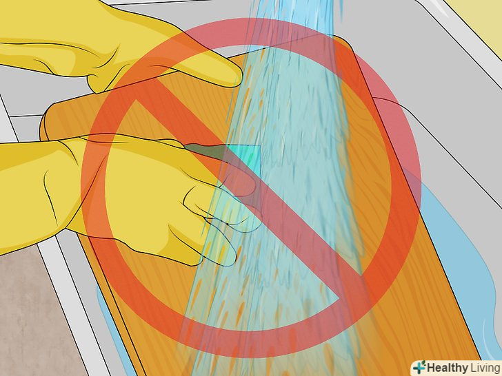 Не мийте обробну дошку в посудомийній машині. Дерев'яні обробні дошки вкрай чутливі до води. Ні за яких обставин не слід ставити дерев'яну обробну дошку в посудомийку. Її необхідно мити виключно вручну.[10]