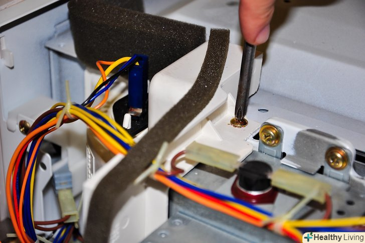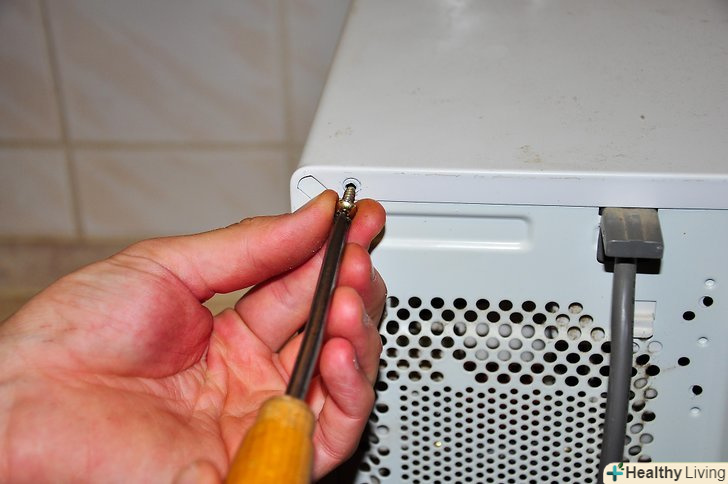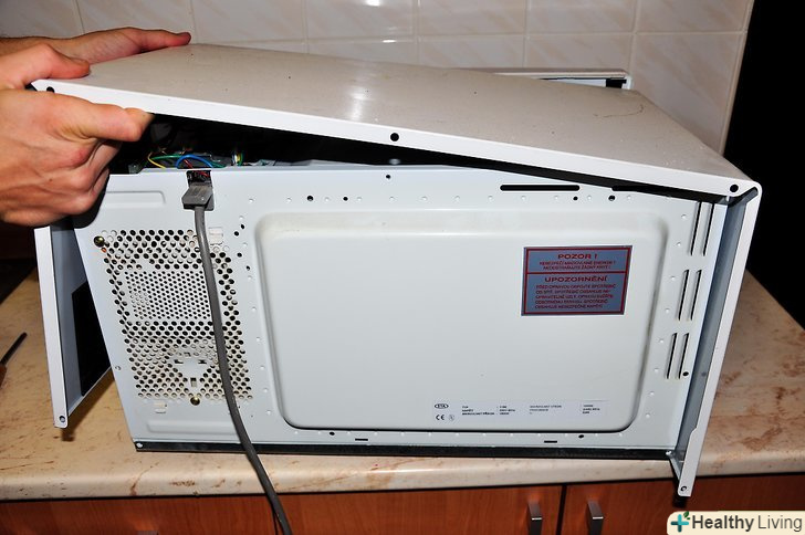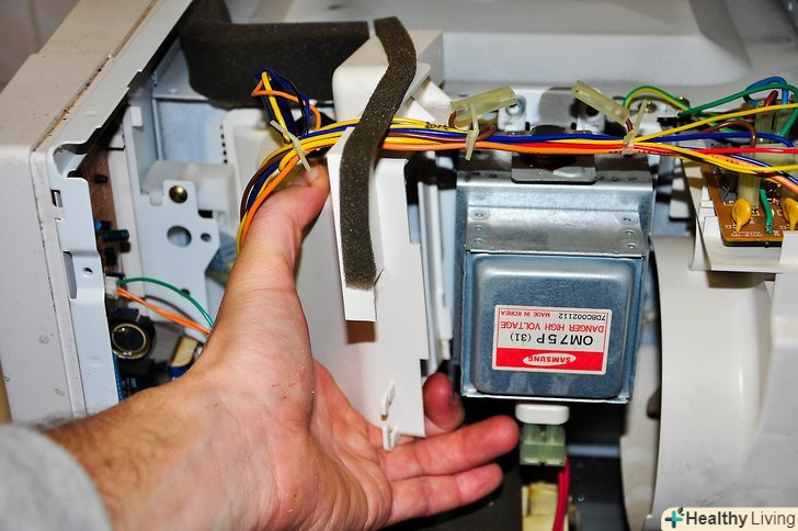Зніміть вентиляційну панель мікрохвильовки і відкладіть її в сторону.для цього вам, можливо, буде потрібно також зняти верхню і бічні панелі.
