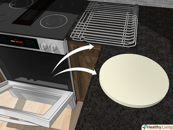 Дістаньте все з духовки, в тому числі решітки.вийміть з духовки все, що можна. Перш ніж приступити до чищення духовки, видаліть з неї решітки, камені для піци, термометри тощо.- Відкладіть всі вийняті з духовки предмети в сторону, щоб почистити їх пізніше.