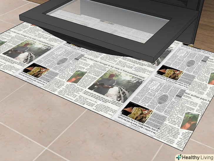 Застеліть підлогу навколо духовки старими газетами.якщо у вас немає непотрібних газет, використовуйте замість них паперові рушники. Постеліть їх на підлогу навколо духовки, щоб бризки миючого засобу і бруду потрапили на папір.[6]- Це спростить чистку духовки, так як вам не доведеться турбуватися про те, що ви забрудните підлогу навколо неї. Потім можна буде просто викинути забруднилися газети.