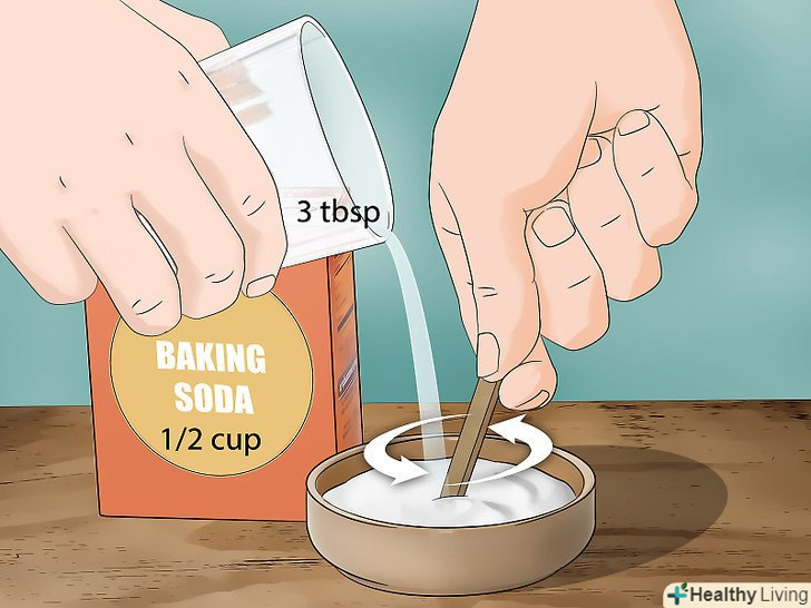 Приготуйте пасту з харчової соди і води.Візьміть 1/2 склянки (90 грамів) харчової соди і приблизно 3 столові ложки (44 мілілітри) води. Змішайте їх в невеликій мисці, щоб вийшла пастоподібна маса.[1]- При необхідності додайте ще трохи води або харчової соди, щоб вийшла потрібна консистенція. Паста не повинна бути ні занадто рідкою, ні надто густою або грудкуватою.