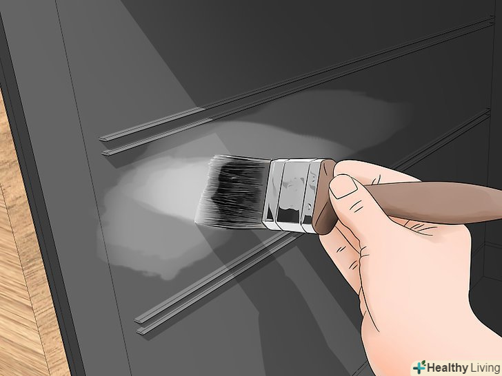 Нанесіть пасту з харчової соди на всю внутрішню поверхню духовки.однак не покривайте пастою нагрівальні елементи! Нанесіть пасту за допомогою чистої кисті і приділяйте при цьому особливу увагу пригорілим і брудним місцям.[2]- Якщо забруднилася внутрішня поверхня скла на дверцятах духовки, нанесіть пасту і на неї.