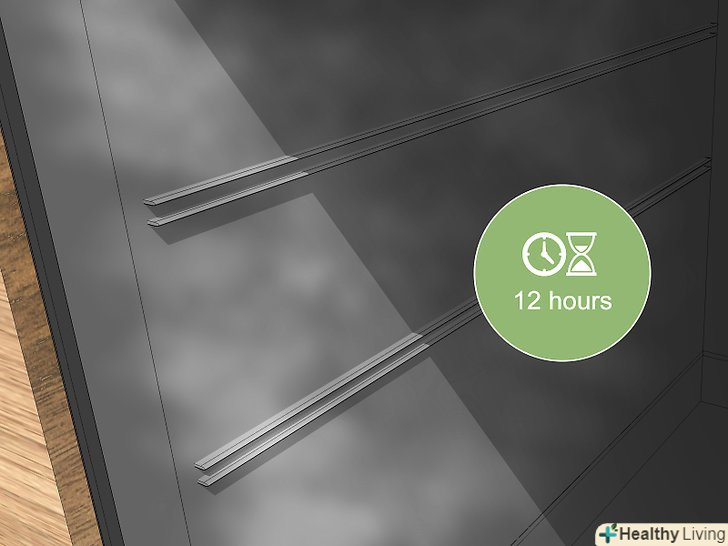 Залиште пасту хоча б на 12 годин, щоб вона ввібрала бруд.після того як ви нанесете пасту з харчової соди на внутрішню поверхню духовки, залиште її на всю ніч (хоча б на 12 годин). Закрийте дверцята духовки, щоб вона нікому не заважала.[3]- Харчова сода стане коричневою, що цілком нормально. За ніч харчова сода вбере і розщепить весь бруд, яка пристала до стінок духовки.